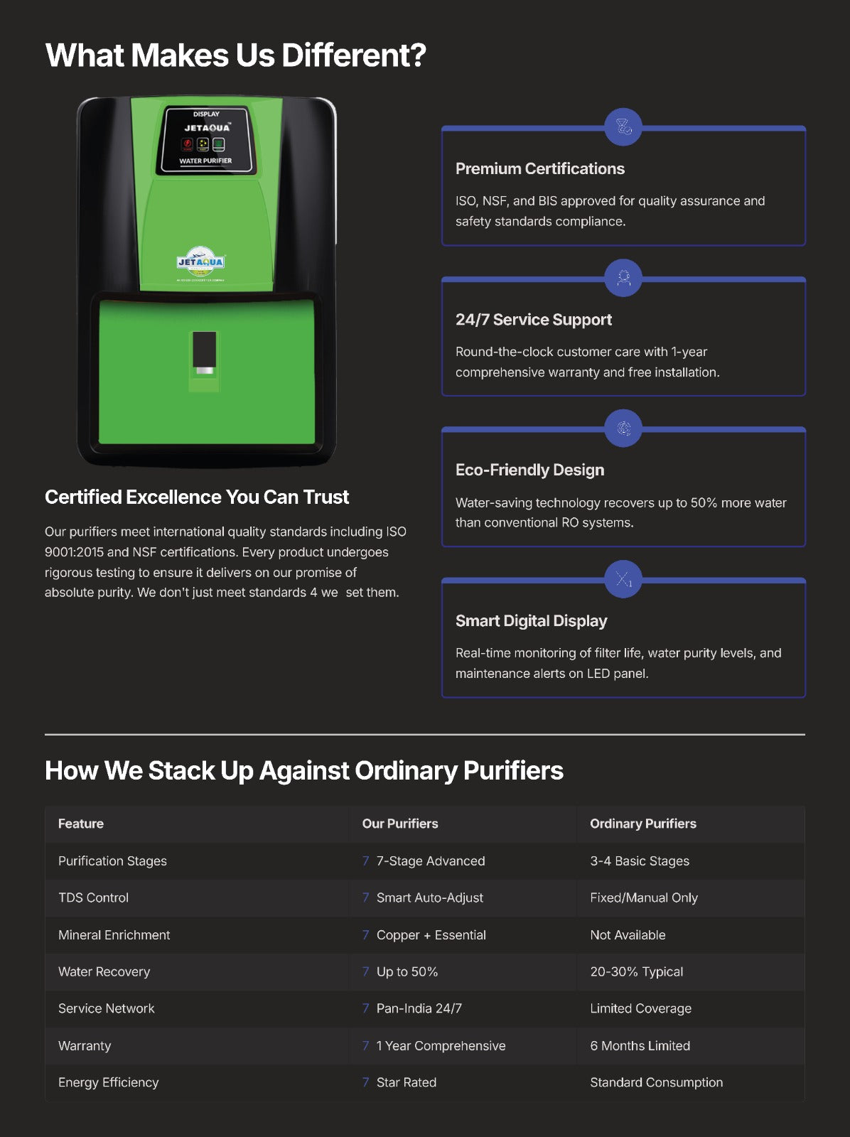 Experience the perfect blend of innovation, health, and design with the JetAqua Seven Plus Water Purifier. Built with advanced 7-stage purification technology, it ensures every drop of water is clean, mineral-enriched, and alkaline balanced — giving your family the healthiest hydration every day. Powered...